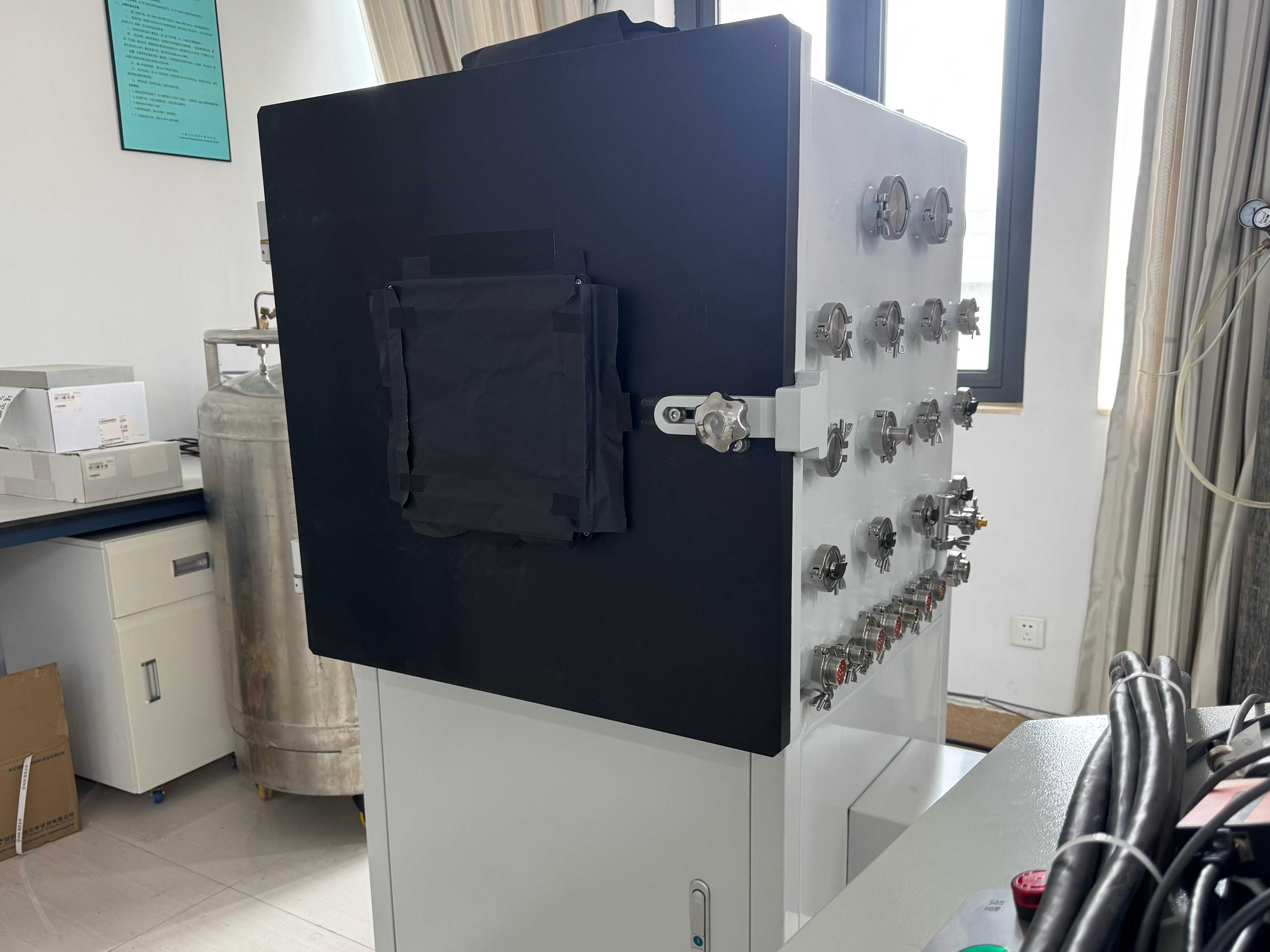 模拟火星环境舱的整个系统由自增压液氮罐、环境舱和控制柜三大部分组成,并支持与ASD FieldSpec® 4 Hi-Res NG光谱辐射仪联用,能实现在特定的模拟火星环境中采集可见光、近红外和短波红外图像,以记录样品受不同环境条件影响下的原位光谱特征。舱体空间为780×750×750 mm,配置多个光学视窗与25个仪器扩展接口;200 L自增压液氮罐可确保仪器能在-150℃低温持续运行≥20小时;控制柜能实时监控温/湿/压/气体多源数据,支持历史环境参数曲线导出。