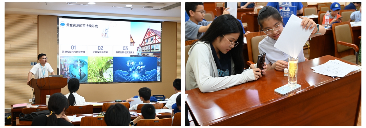 首场科普报告《地球上的黄金在哪里》由“春分工程”青年科普团成员杨志爽担纲。报告以“地球深处的宝藏”为主线,抽丝剥茧地揭示黄金从地幔孕育到火山出世的全过程,并纵览南非、中国、澳大利亚等主要金矿区,完成一场跨越洲际的“黄金寻宝”之旅。为了让抽象的地质化学原理可见可感,杨志爽现场指导同学们完成“黄金雨”小实验——当金黄色沉淀在试管中缓缓析出,掌声与惊叹声瞬间点燃全场。