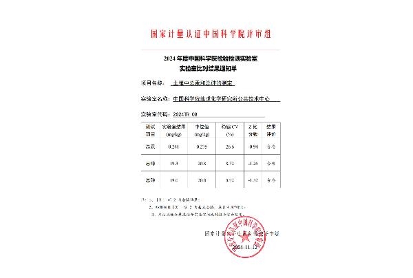 本次参与国家计量认证中国科学院评审组组织的实验室间比对获得的好成绩再次表明,地化所公共技术中心在相关仪器上的检测方法成熟可信,分析测试人员的技术可靠,能够为服务研究所抢占科技制高点提供强有力的技术支撑,同时为所内外科技人员开展的科技创新活动提供坚实的技术保障。