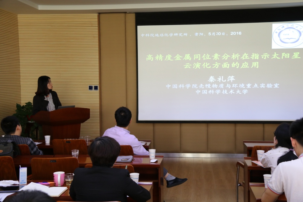 应中国科学院地球化学研究所矿床地球化学国家重点实验室刘耘研究员的邀请,中国科学技术大学的吴忠庆教授、秦礼萍教授于5月20日对地化所进行了学术访问,并分别带来题为“利用矿物弹性数据认识地球内部”、“高精度金属同位素分析在指示太阳星云演化方面的应用”的学术报告。报告会由刘耘研究员主持,地化所部分科研人员和研究生参加了本次报告会。