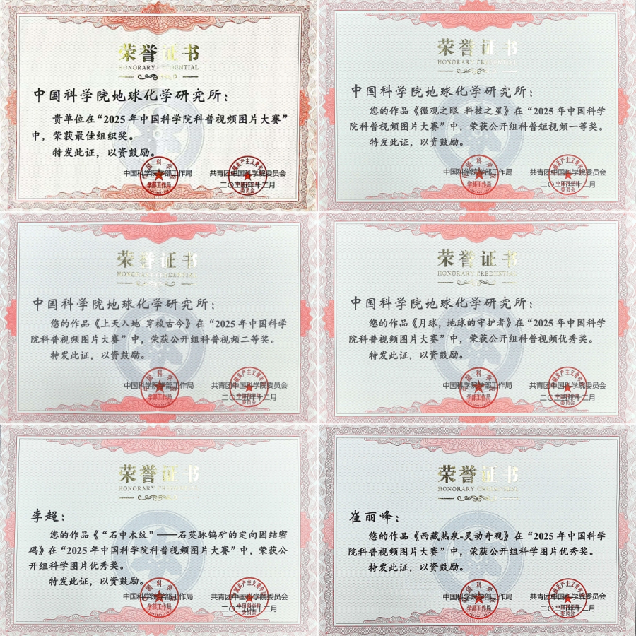 近日,2025年中国科学院科普视频图片大赛获奖名单正式揭晓。经过精心组织筹备,中国科学院地球化学研究所(以下简称地化所)取得丰硕成果,提交的多个作品斩获多个奖项,并荣获大赛“最佳组织奖”,充分体现了地化所在科普领域扎实的工作基础和卓越的创新力。