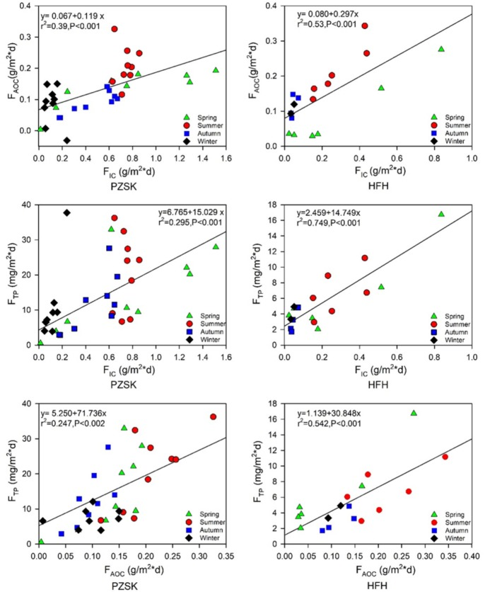 (2)总磷的沉降通量与内源有机碳和无机碳的沉降通量成正比,反映了生物碳泵对磷去除的控制;