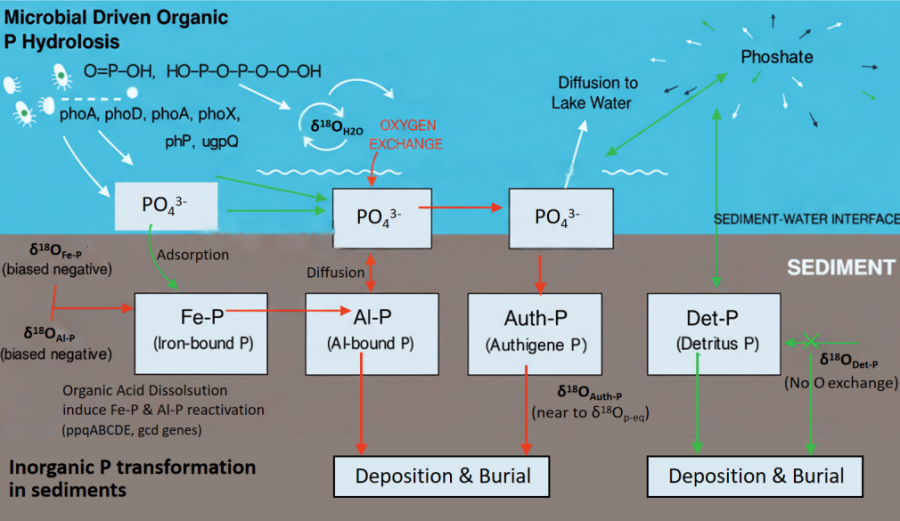 图2. 湖泊沉积物内源磷生物地球化学循环的磷酸盐氧同位素示踪